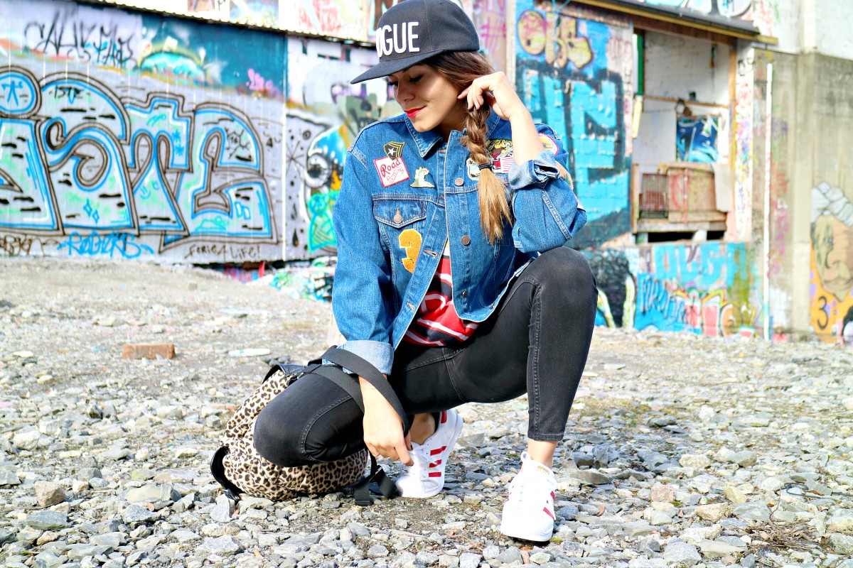 Tee fra StyleConnection HER // Denimjakke fra TopShop // Ryggsekk fra H&M // Kicks fra Adidas // Jeans fra Monki // Snapback fra Karl Alley