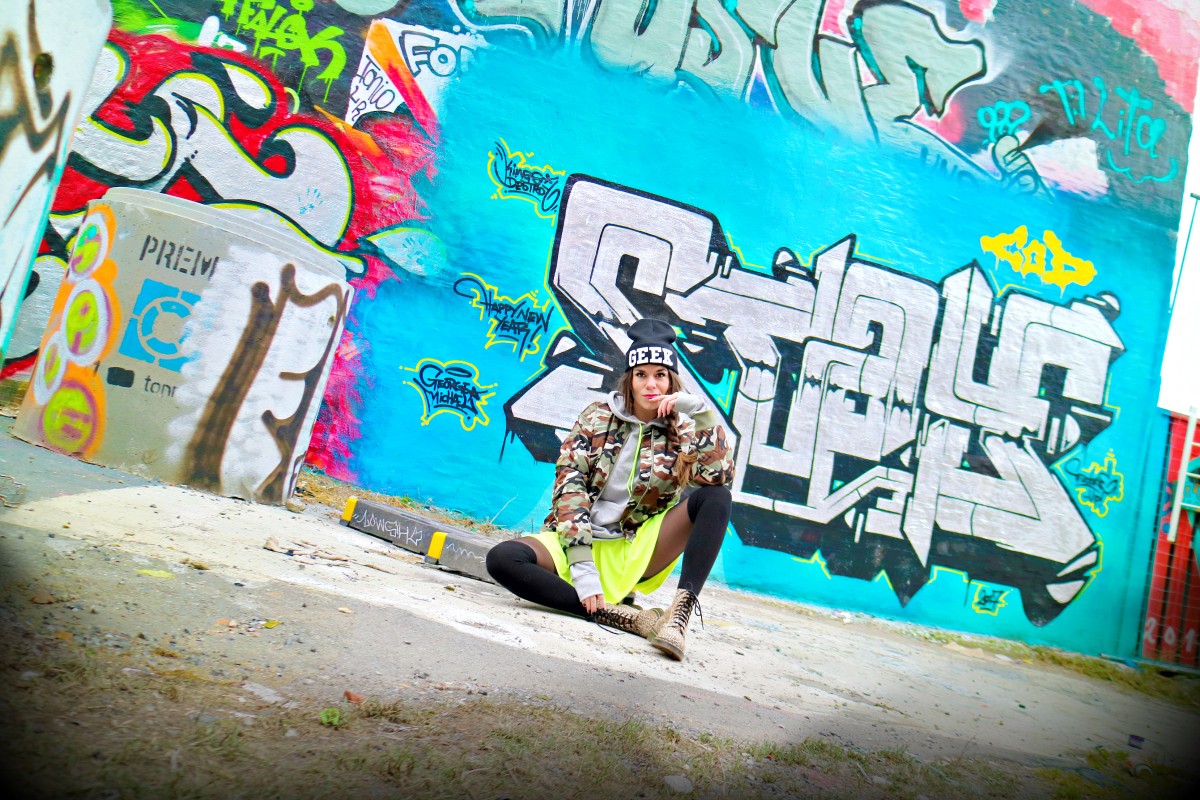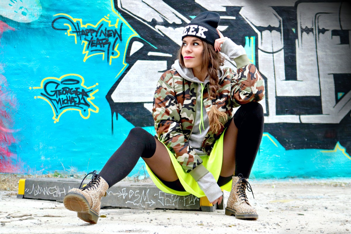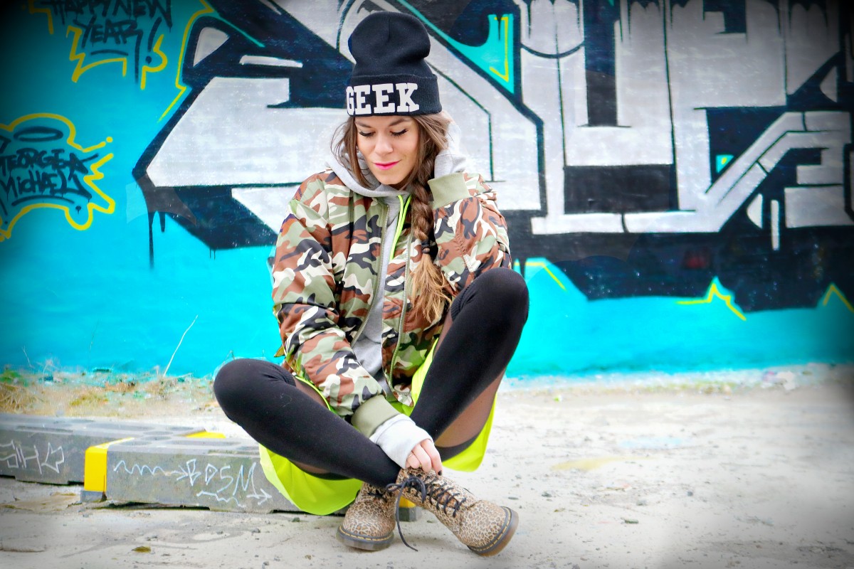 Så da stod jeg der da, og poserte som en gal mens Dennis lekte fotograf. I dag har jeg mikset både army og leopard sammen med gråtoner og neongul - perfekt kombo, spør du meg. Akkurat passe crazy på en januarlørdag - wiiiii!