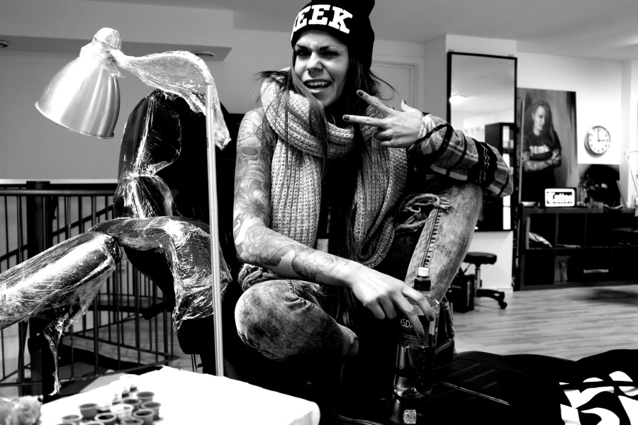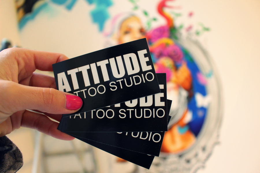 Attitude, faktisk! Det mest fantastiske har skjedd, skjønner dere, og det er at Christine som tatoverer meg har flyttet til Oslo, og begynt å jobbe på Attitude, som er et av Norges aller beste tattoo studioer. Jeg er så glad for at det ikke lenger er totalt fem timers reisevei, SELVOM jeg kunne kjørt i tre døgn i strekk, BARE for å bli tatovert av Christine. Råere dame finner man faktisk ikke, og nå holder hun til min store glede altså til i Pilestredet. HURRAAAA!
