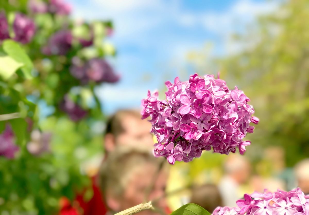 Vakre syriner utenfor kirken… Jeg elsker disse blomstene - spesielt den nydelige duften som minner meg om barndommen. Vi hadde nemlig en haug av syriner i hagen!