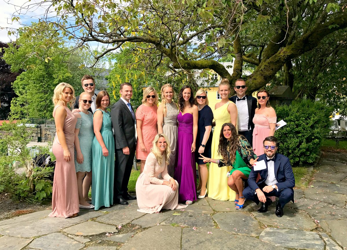 Hele vennegjengen med og uten følge, som venter spent på brudeparet. Tenk at vennegjengen har holdt sammen siden 8. klasse. Det er ganske sjukt ♥