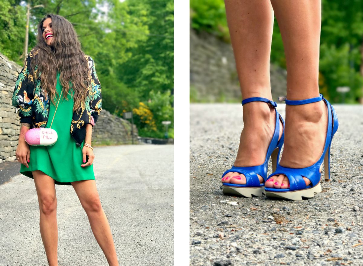 Antrekket jeg endte opp med… Grønn kjole fra Zara, jakke fra Urban Outfitters, heels fra Bronx og veske fra SkinnyDip/StyleConnection