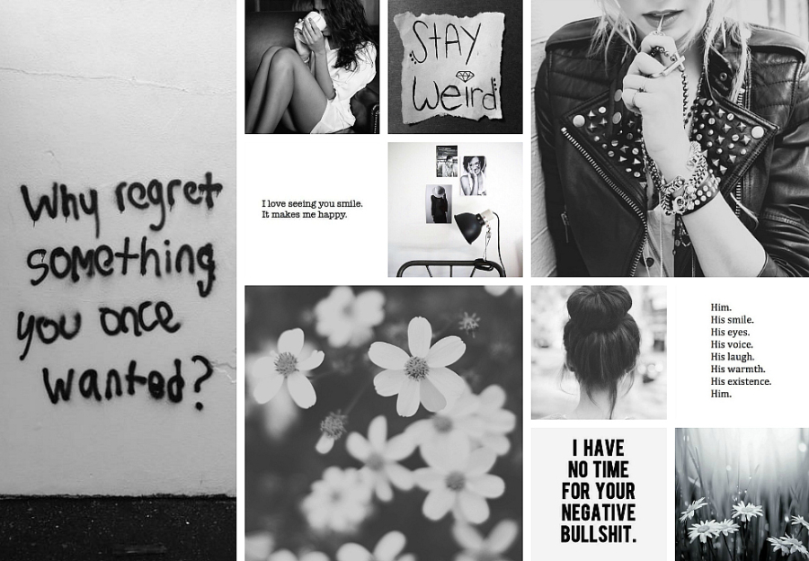 Blææ! I dag er vi så sjuuukt sliten og Betty har i skrivende stund lagt seg strak ut på gulvet, mens jeg sitter sammenkrøket i sofakroken og mikser hangover med blogging. Når jeg er i denne tilstanden finnes jeg dessverre ikke inspirerende, så da blir weheartit min aller beste venn… Som nevnt noen ganger tidligere, gjør de bildene meg rett og slett GLAD, og i dag tenkte jeg å dele litt b&w inspo. Jeg elsker å lage kollasjer som dette, hvor jeg mikser både quotes og andre inspirerende snaps, så da håper jeg at dere liker denne sammensetningen like godt som meg. Hihihi!