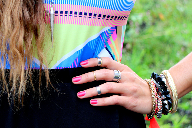 Badedrakt fra Monki // skjørt og sølvringer fra H&M // sølvsmykke fra TopShop // gullsmykke fra Ettika (her) // heels fra Bershka // veske fra Marc by Marc Jacobs // gullringer fra Outfitters Nation // armbånd fra Aldo/H&M // neglelakk fra OPI i fargen «A Definite Moust-Have»