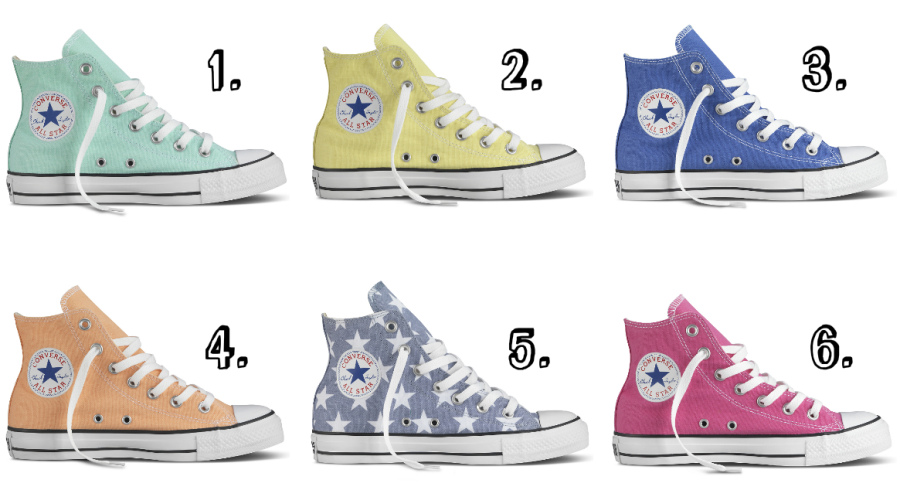 Ååå, disse conversene var skikkelig søte! Jeg er så sinnsykt ubesluttsom, alt fra når det gjelder hva jeg skal ha på meg til hva jeg skal ha som pålegg på maten.. Kan stå i evigheter å bare vurdere det, haha! Meeen om jeg måtte velge, ville jeg kanskje tatt nr. 1, 4 og 6! Skikkelig herlige vårfarger på alle sammen 🙂