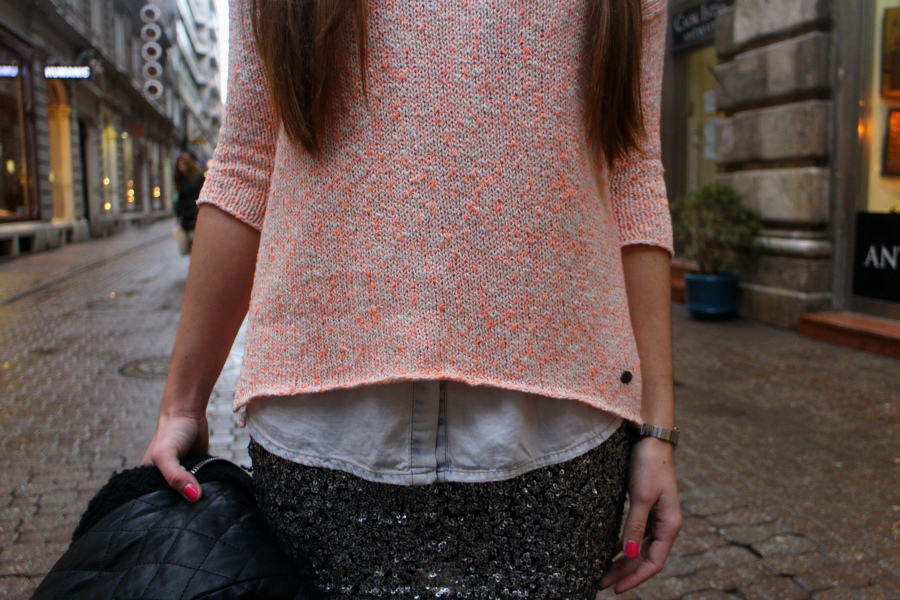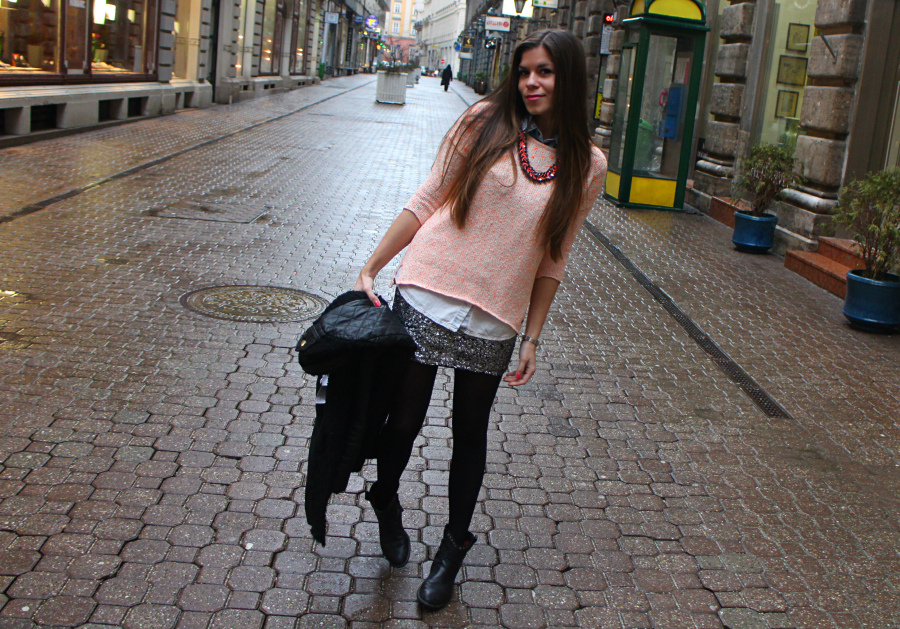 Genser fra ONLY // skjørt fra H&M // skjorte fra Bershka // smykke fra Second Female // boots fra Footway // kåpe fra Zara // klokke fra Casio (her)