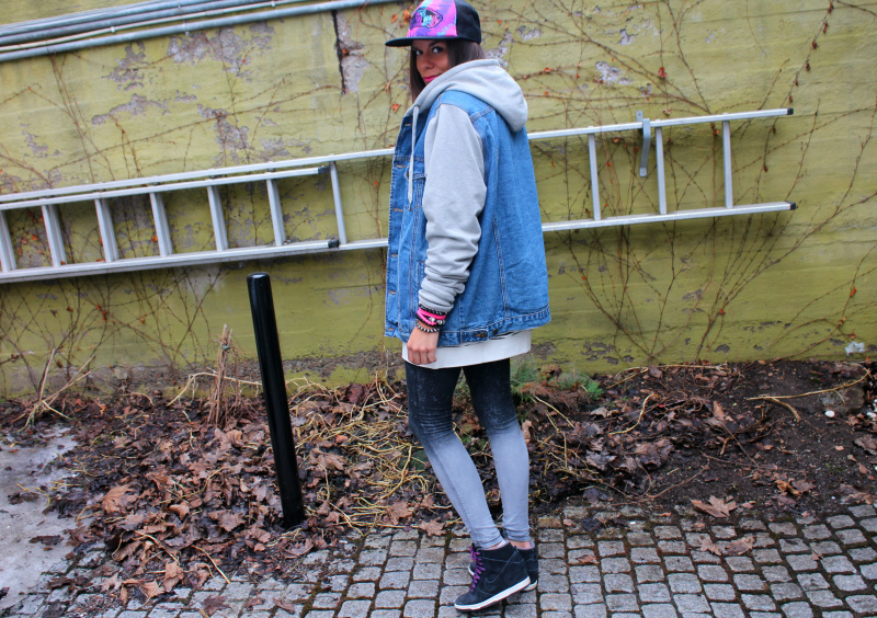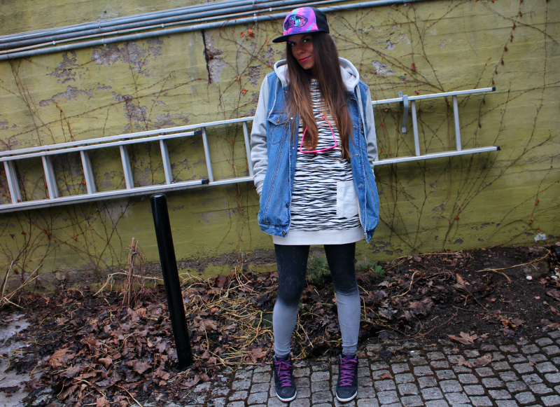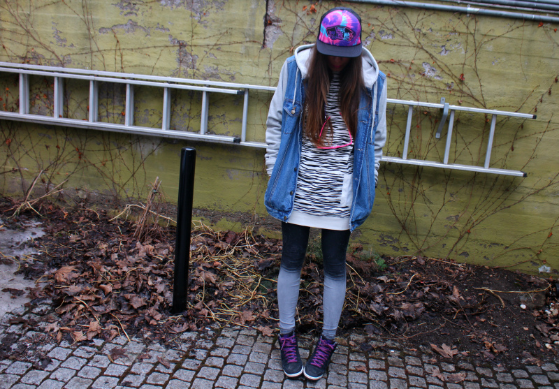 Genser fra Galagowear/Junkyard (her) // jakke fra Urban (tilsvarende her) // leggings fra New Yorker // caps fra Vans // solbriller kjøpt på Hawaii // SkyHigh dunks fra Nike // armbånd fra Oslove/Aldo/H&M