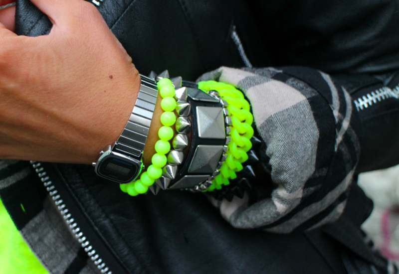 Skjørt og smykke fra TopShop // topp fra Object // skjorte fra H&M // vintage skinnjakke fra Kiliwatch // neongule Converse // klokke fra Casio/Klokkegiganten (her) // armbånd fra Aldo/Pieces