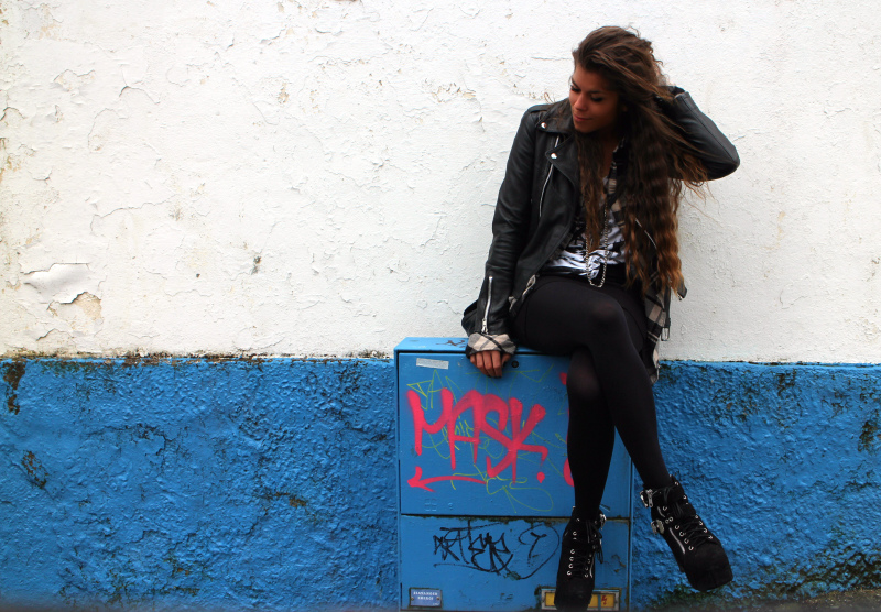 Topp fra TopShop // skjorte fra H&M // vintage skinnjakke fra Kiliwatch // skjørt fra Pull & Bear // veske funnet i skapet til mamma // heels fra Jeffrey Campbell // smykker fra Nelly/Aldo