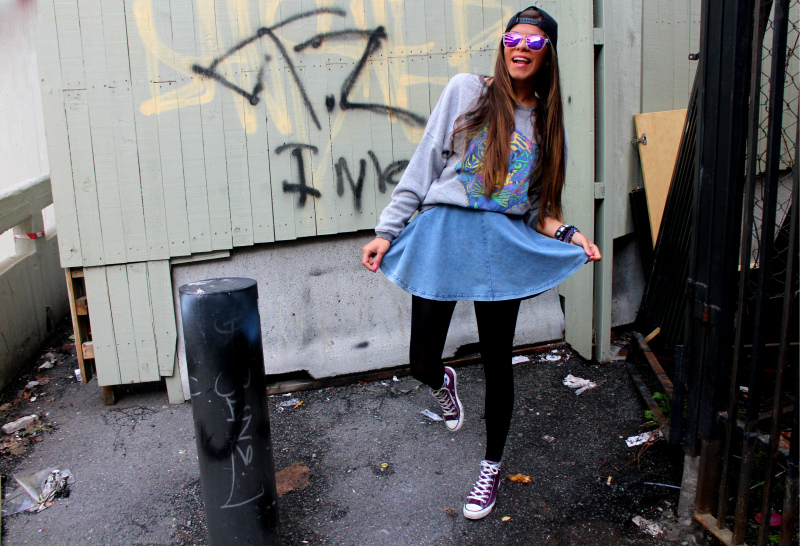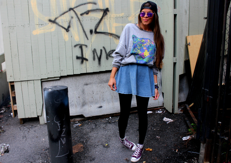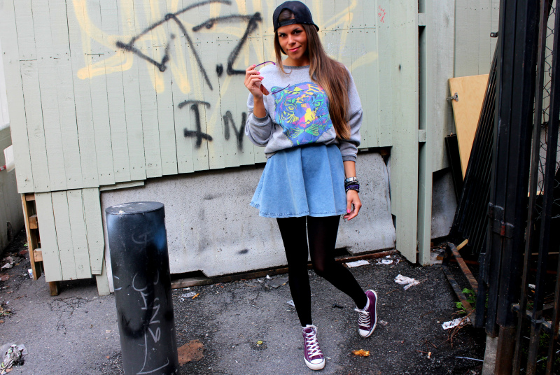Åh, jeg ELSKER stilen din så sykt! Du er så rå! jeg digger deg! Elsker de lilla conversa, det må bli mitt neste innkjøp! 😀