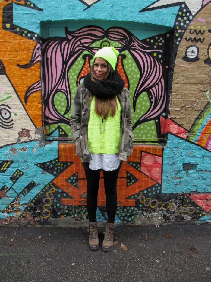 Så kult antrekk Kristin! Å den bakgrunnen passet jo helt perfekt! Selv om sånne ting er ulovlig i gatene er det bare noen ganger kunst! Så kult og fresht!! Elsker antrekket ditt Kristin som alltid! Så er det jo tid for snikk snakk i kveld så jeg sitter klar i sofaen med en stor bolle med popcorn og venter på at dere skal legge den ut. Gleder meg!<3