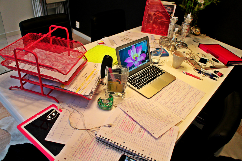 Hva eksploderte liksom? Fy fader… Hva skrivebordet sier om meg? For det første så har jeg ikke noe skrivebord, men et stakkars kjøkkenbord som gjør samme nytten, og som må lide av et evig rot. Dette er altså sånn jeg jobber, med et delvis system i rotet men på samme tid NULL kontroll. Vi snakker et evig kaos, men er man ikke strukturert og ryddig, så er man rett og slett ikke det, og jeg liker å tro at de virkelige kreative sjelene har det litt kaotisk rundt seg…