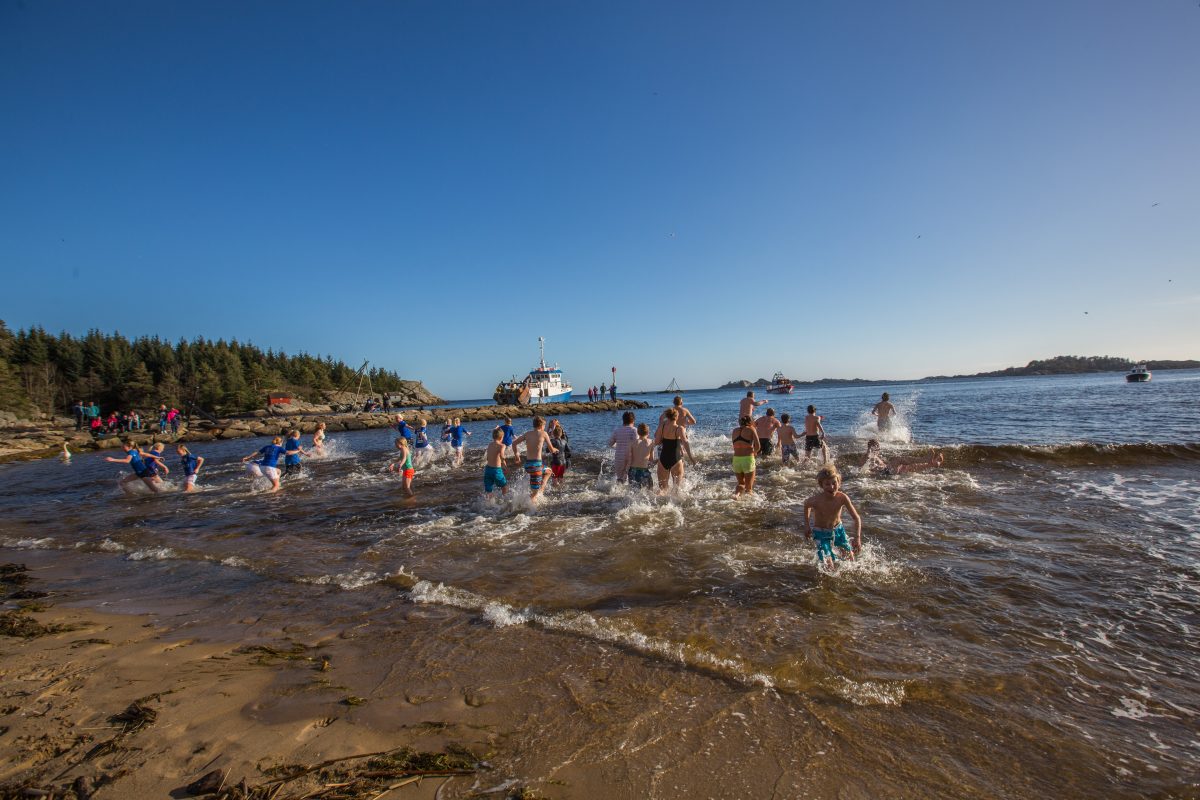 Etter det interessante besøket på fyret, guidet av Mandals kuleste pensjonist, samt litt lett opplæring i smoispråket, var det duket for årets første bad. Jada, dere leste riktig - mandalittene er som sagt helt crazy, og min gærne makker hoppet selvsagt uti. Ordførerne fra både Mandal, Lindesnes og Marnadal stod bak denne ville utfordringen, og havnet på forsiden av lokalavisen iført badetøy og et stort smil - gøy!