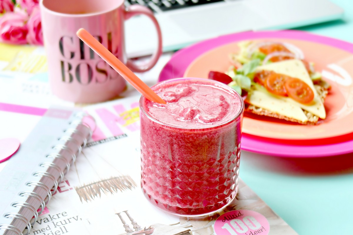 Ei litta smoothie er heller ikke feil, så nå koser jeg meg glugg her jeg sitter, med en særdeles fargerik start på dagen.