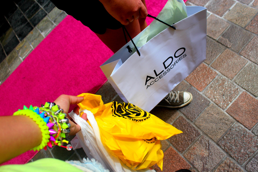 Solen ville ikke titte frem fra skyene i dag, noe som egentlig var like greit med tanke på at vi dro til Ala Moana kjøpesenter. Her trasket vi rundt i noen timer, og fikk shoppet både det ene og det andre som jeg selvfølgelig skal vise dere senere. Men se da! Til min store begeistring, har jeg endelig fått fatt i neon gule Converse, og disse ble en del av dagens outfit, frem til gnagsårene meldte sin ankomst, og jeg ble nødt til å kjøpe nye flip flops. Jaja… De er ihvertfall fine å se på da.. Haha!