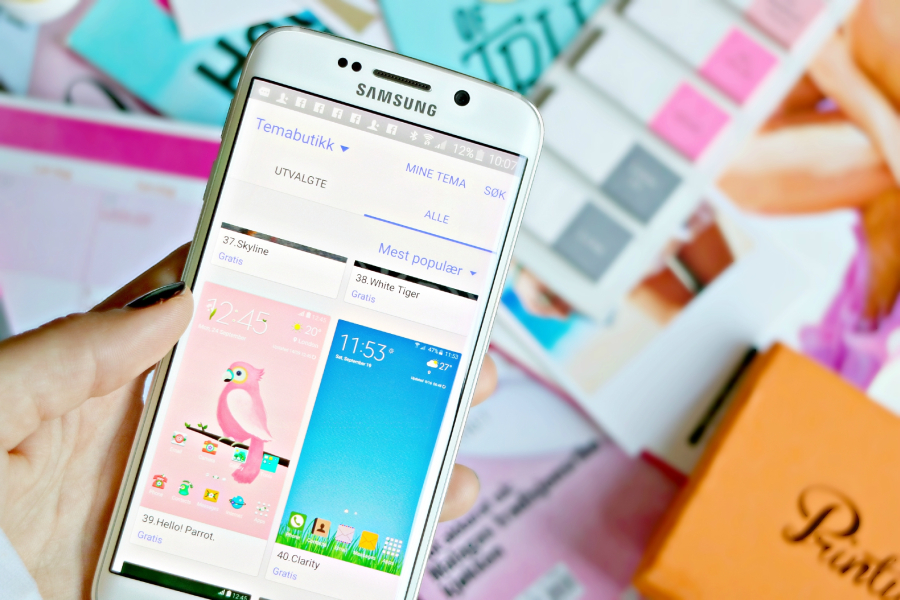 En av de funksjonene jeg liker aller best på Samsung Galaxy S6 Edge, er at man kan endre design og tema på telefonen sin ved et par tastetrykk. Man kan altså gjøre telefonen enda mer spennende enn bare ved bruk av et festlig skjermbilde, og de ulike ikonene er tilpasset ulike design, som finnes lagret på telefonen. Det er et hav av gratis temaer man kan velge mellom, og bare det å bla seg gjennom de ulike uttrykkene er gøy i seg selv.
