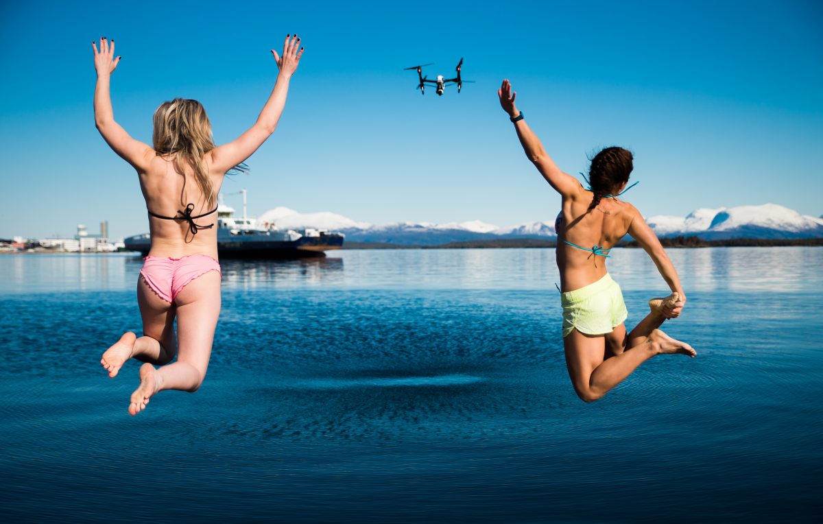 Galskap! Trine og Cathrine trosset det kalde vannet, og hoppet rett uti…