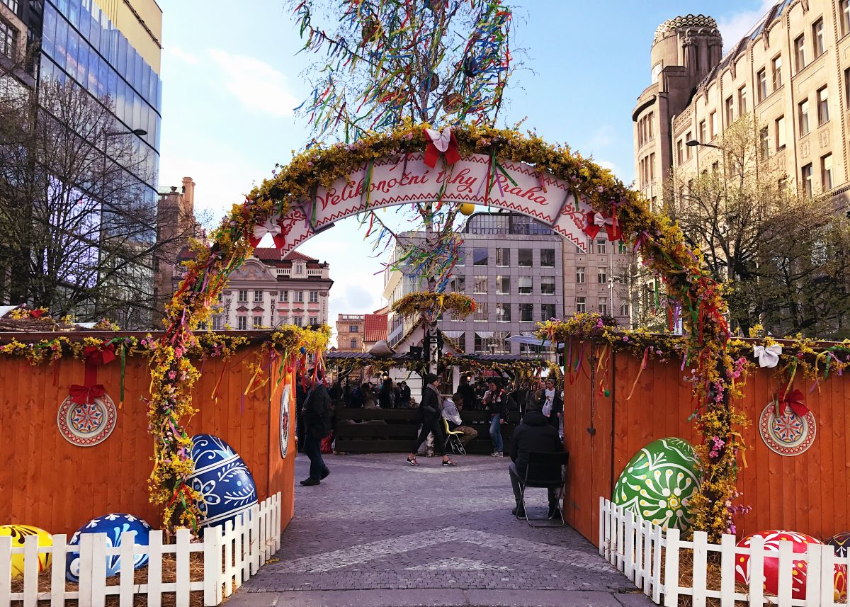 Vi koser oss glugg ihjel her i favorittbyen, og det som gjør hele opplevelsen ekstra koselig denne gangen, er at de har begynt å pynte til påske - her sparer de ikke på påskepynten, for å si det sånn, haha. Da vi var her på vår første kjærestetur for 5 år siden, var det julestemning med juletrær, julemusikk, og julemarked, og i går fikk vi føle litt på den samme stemningen, minus alt som har med jul å gjøre. Her er det påskemarked med sjarmerende små boder hvor man kan kjøpe pynt og påskegodt, og både geiter, sauer og en liten ponni som du kan klappe og kose med. Praha kan altså uten tvil anbefales rundt påsketider… I tillegge er været så deilig med sol som varmer, og det beste er at trærene så vidt begynner å bli grønne, åh!