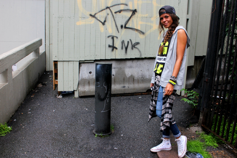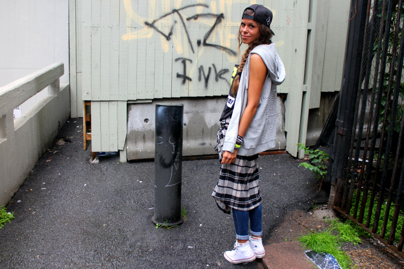 Det er norsk sommer i Oslo, kuldegrader og pøsregn og det var til og med såpass gale at jeg ikke kunne trosse været for å ta på meg shortsen. Men selvom regnet høljer ned, lar jeg ikke det stoppe meg fra et outfit-innlegg, og jeg bytter heller ikke ut Conversene og sweat vesten med støvler og regnjakke. Pokkers drittvær altså, men som det så fint står skrevet på ev vegg ved et av favoritt områdene mine her på Løkka; Det finnes ikke stygt vær, bare stygge klær, så da får jeg rett og slett bare si meg enig. Hahah!
