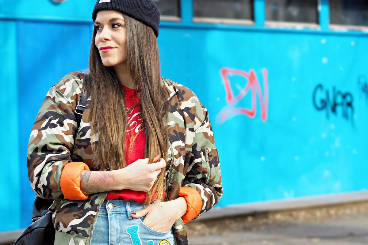 I min lille moteverden er det «more is more» som gjelder, og jeg føler meg mest komfortabel når jeg ser ut som et kaotisk sirkus. I dag har jeg kombinert camoprint med knallfarger og patches, og dette synes jeg er en leken og morsom miks - spesielt nå når våren har begynt å melde sin ankomst. Tenk at det ikke var nødvendig med skjerf i dag, da!? Herregud så deilig. Og på høy tid! Er det bare jeg som synes at våren har latt vente på seg altfor lenge i år?
