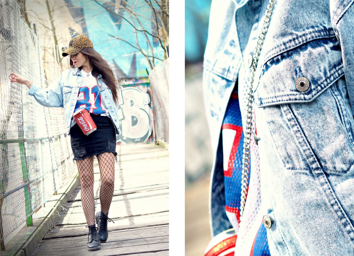 Topp: Vintage // Denimjakke: Bershka // Veske: SkinnyDip, StyleConnection // Caps: New Era // Boots: Dr.Martens // Skjørt: H&M