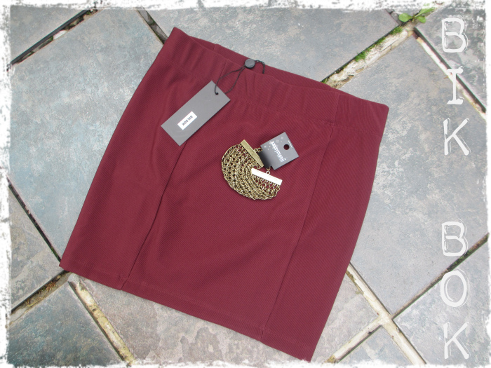 Da fikk jeg shoppet litt i dag også, og valget falt på et burgunder rødt skjørt og et fresht armbånd i børstet gull. Elsker disse to fargene i kombinasjon med hverandre, og looken får en ekstra piff ved å tilføre militær mønster.