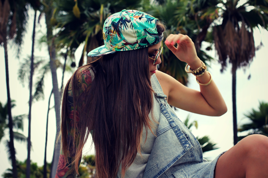 Tank topp fra SomeWear/Junkyard (her) // Converse kjøpt i San Diego // overall fra Flat Top/Urban (her) // snapback fra Nike // kort topp fra Forever21 // armbånd fra H&M/Bud to Rose (her) // solbriller fra Choies (her)