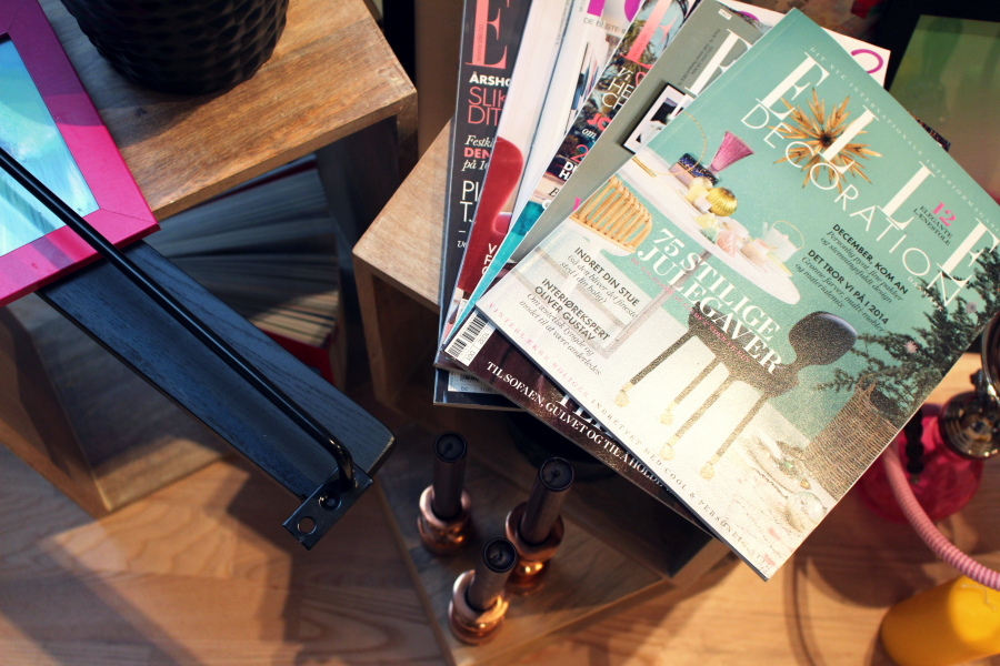 Jeg har akkurat funnet sofakroken etter en hektisk dag med mange kreative møter, og kaffen står selvfølgelig på bordet foran meg. I tillegg fikk jeg pakken jeg har gått og ventet på siden fredag, nemlig pakken med de nye vegghyllene og magasinholderen som jeg har bestilt. Nå skal det bli så fint her, og det er altså veggen bak sofaen som i kveld skal pimpes skikkelig.