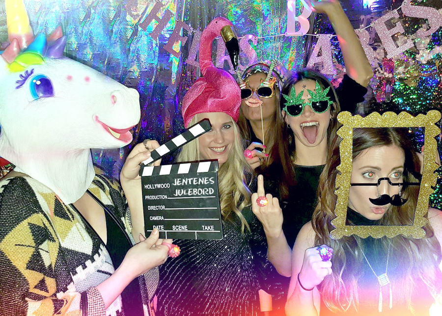 Som underholdning hadde vi «voksenpoeng» som er en slags quiz, hvor tre vinnere stakk av med enda mer sexleketøy, hehe. Her snakker vi den superdigge womanizer med orgasmegaranti, og jeg skal love dere at denne falt i smak. I tillegg hadde vi pakkeleken på rim, og det gøyeste av alt som aldri blir kjedelig - en hjemmemekka photobooth med en haug av spenstige props. Enhjørningen og indianerfjærene slo like godt an i år som i fjor, og den nye rosa flamingoen ble også en hit.