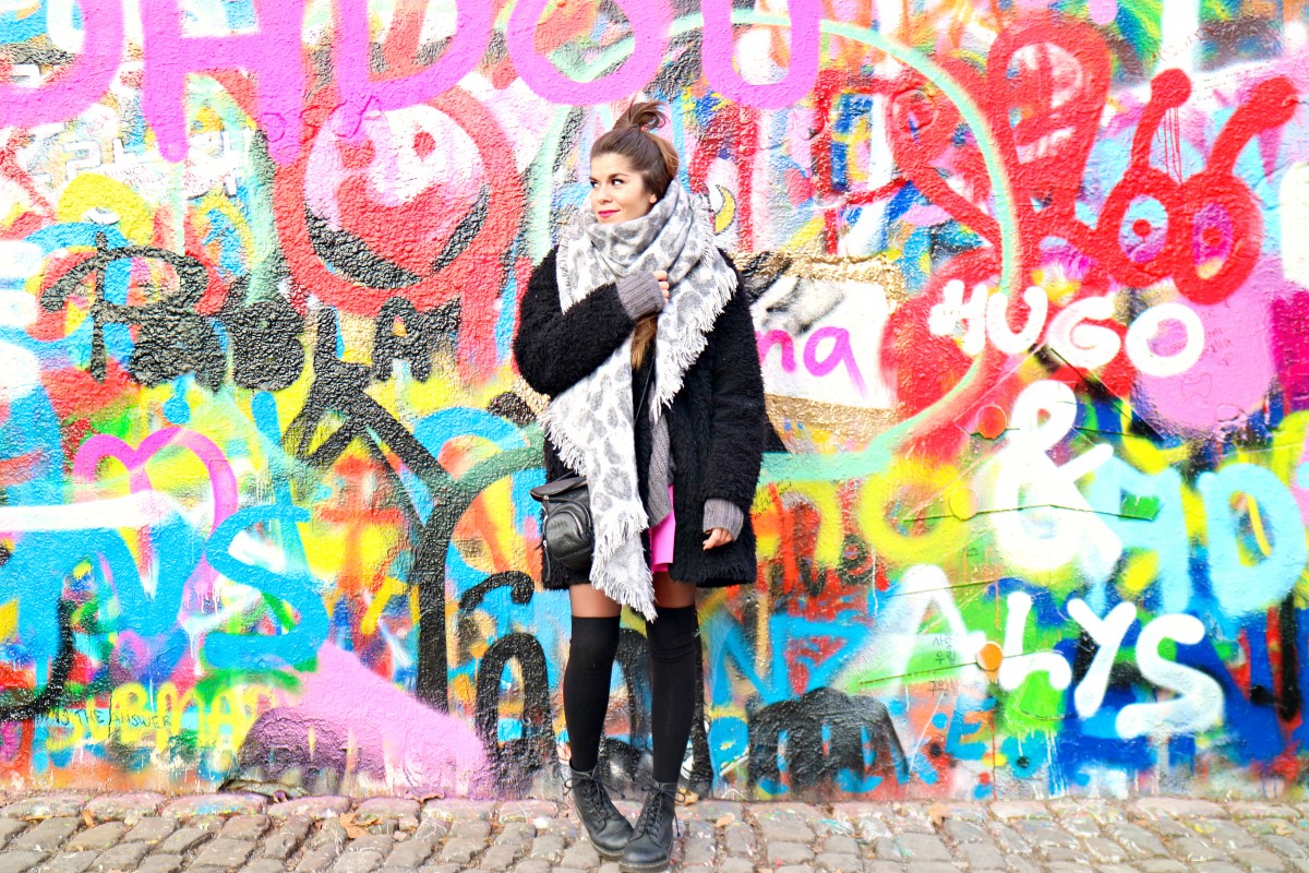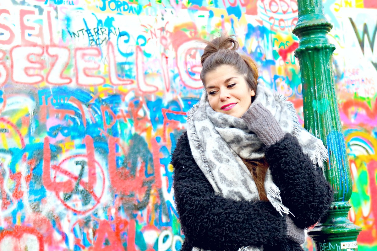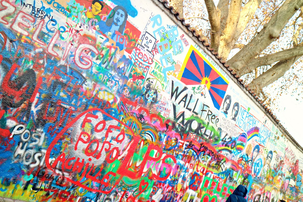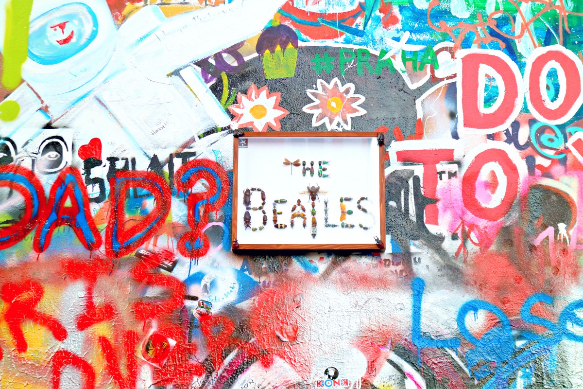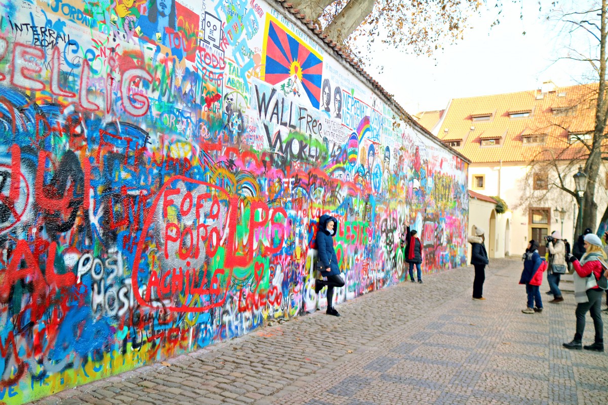 I går tuslet vi til John Lennon-muren, som er en populær attraksjon her i Praha. Muren var på 1980-tallet et sted hvor unge tsjekkere uttrykte sin frustrasjon over kommunistregime ved å skrible ned sine klager, og mye av muren har hele tiden inneholdt graffitibilder av John Lennon og tekster hentet fra Beatles-sanger.