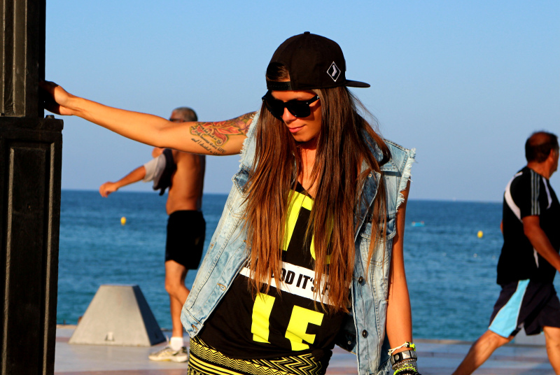 Topp fra New Yorker // denimvest fra Pimpkie // skjørt kjøpt på Hawaii // snapback og Converse fra Junkyard (her) // armbånd fra Aldo/Pieces/Spania