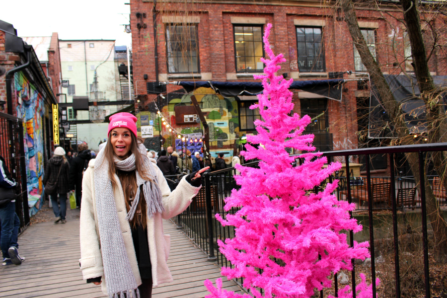 Etter noen timer på café med skravling, dro vi ned på Julemarkedet ved BLÅ for å suge til oss enda mer julestemning, og ingenting er vel hyggeligere enn å tusle rundt på marked mens man kjenner duften av pepperkaker og vafler, hvor man samtidig kan ta en titt på all slags duppeditter og stasj som hører julen til… Enda bedre var det da jeg fant et juletre som man skulle tro var spesialdesignet for både meg og alle andre fargeklatter der ute, men jeg er nok dessverre såpass tradisjonsrik, at jeg aldri i mitt liv kunne funnet på å innføre en knallrosa jul. Nei vettu faen meg hva… Ikke i julen, SELVOM jeg EEEELSKER ROSA, og jeg må faktisk innrømme at jeg har lekt bittelitt med tanken på knallrosa julekuler og julepynt… Men bare bittelitt, altså. Det rosa får vente til tidlig vår. Heheh!