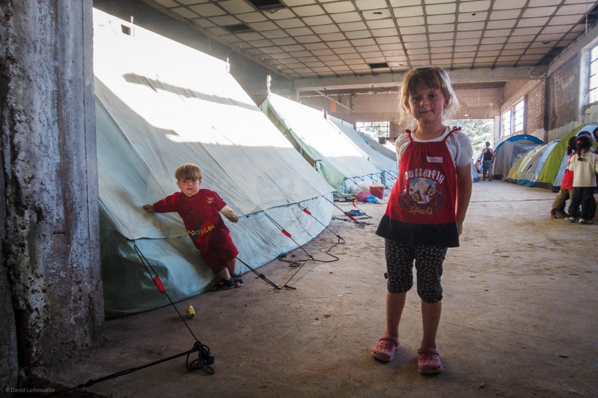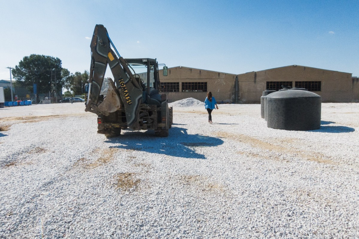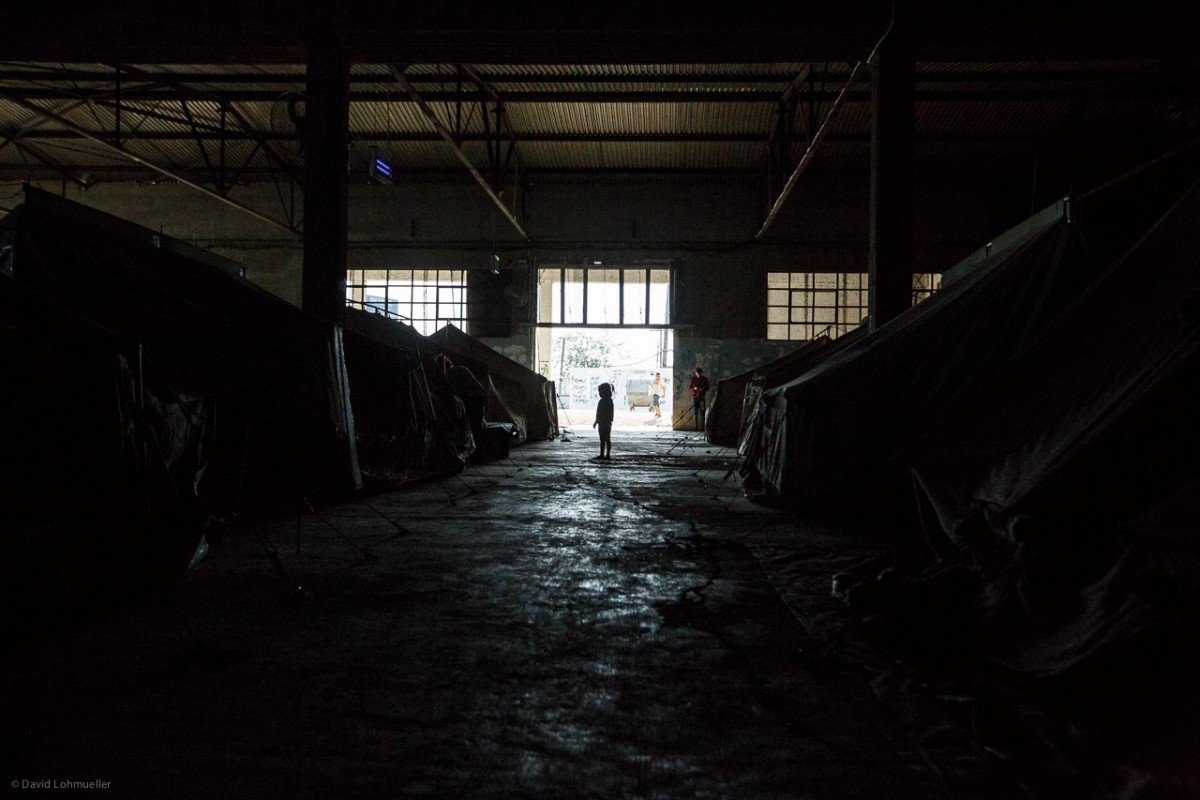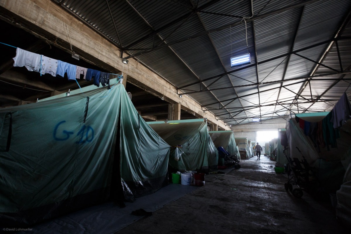 Sindos Karamanlis camp, er satt opp i en forlatt skinnfabrikk.
