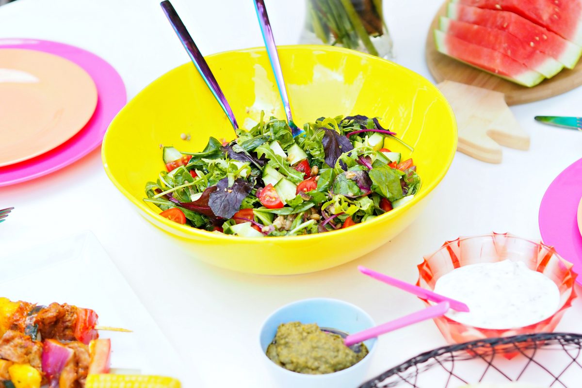 Som tilbehør brukte vi salat med linser og cherrytomater, grillet maiskolbe, ris, baguetter og vegansk aioli, og vi koste oss med musikk på anlegget og noen fine samtaler.