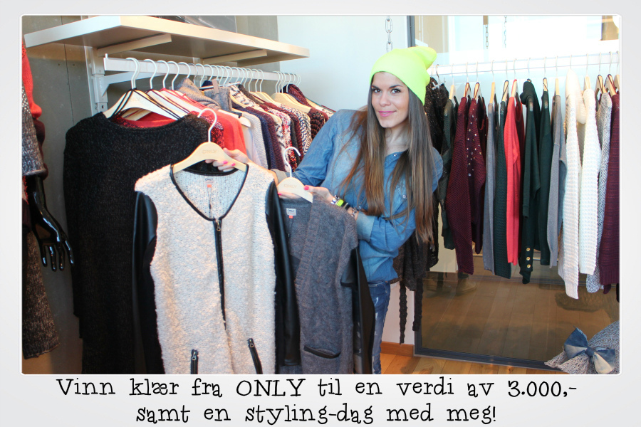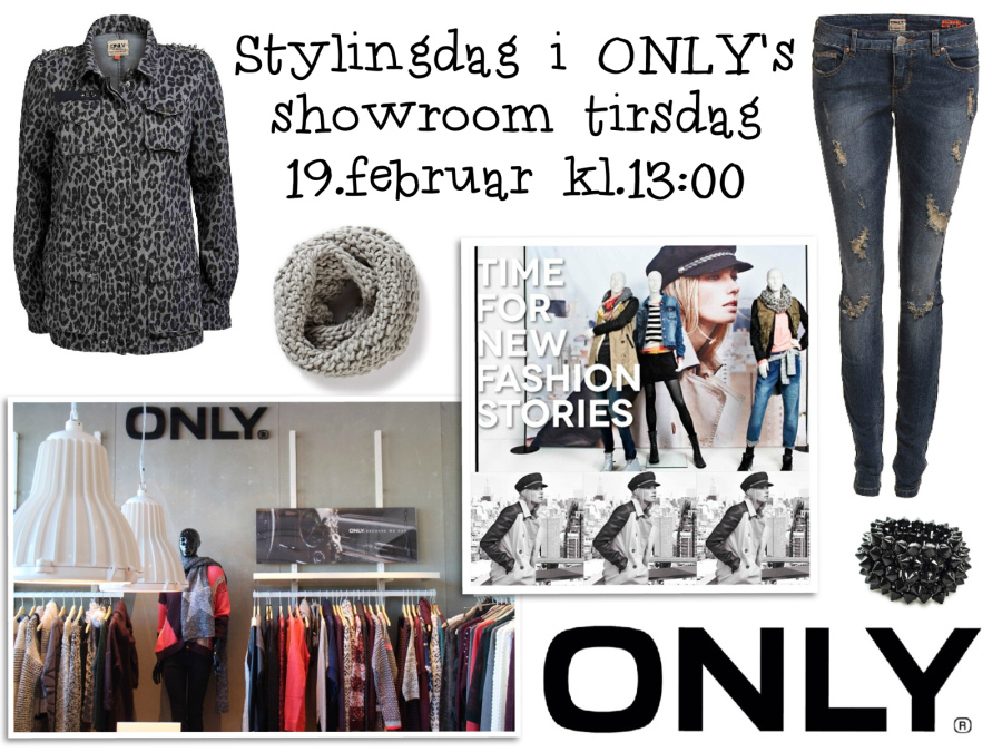 Anyways… Det er jo søndag, og på slike dager er det kjekt med gode nyheter og spennende prosjekter, er dere ikke enig? Så jeg vil i samarbeid med ONLY, invitere med meg tre heldige jenter som vil få tips til styling av ONLY’s dekoratør og meg, en presentasjon av kommende kolleksjoner, og på toppen av det hele kommer jeg til å kle dere opp i hvert sitt antrekk fra ONLY til en verdi av hele 3.000,- Jiiiipiiiii! Hvor gøy blir ikke dette, hæ? Herregud jeg gleder meg sånn! Stylingdagen vil finne sted i et ONLY- Showroom i nærheten av deg, tirsdag 19.februar kl. 13:00!