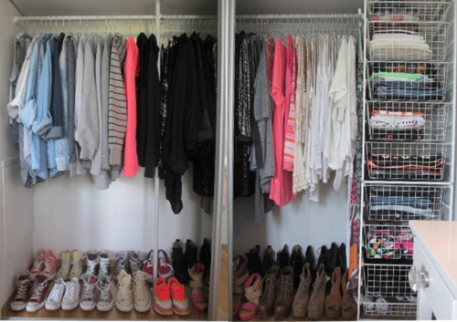Et tips; Hvis du vil ha bedre plass til skoene så kan du bare ta en skohylle på gulvet inni skapet, så har to plutselig \»to etasjer\» til sko:) Hvis du skjønte;) En skohylle, hehe:)