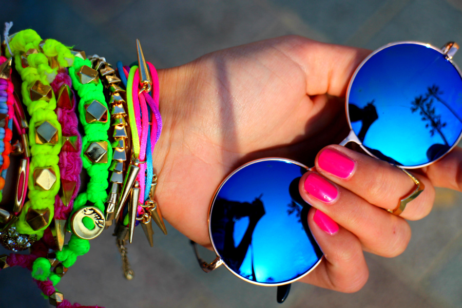 Solbriller fra Choies (her) // Neglelakk fra OPI i fargen «Don’t Know Beats Me» (her) // bandana fra Urban Outfitters // armbånd fra Ettika/Urban Outfitters // rosa leppestiftt fra To Faced (her) // sweat vest fra Flat Top // denimshorts fra Bershka // Converse (her) //