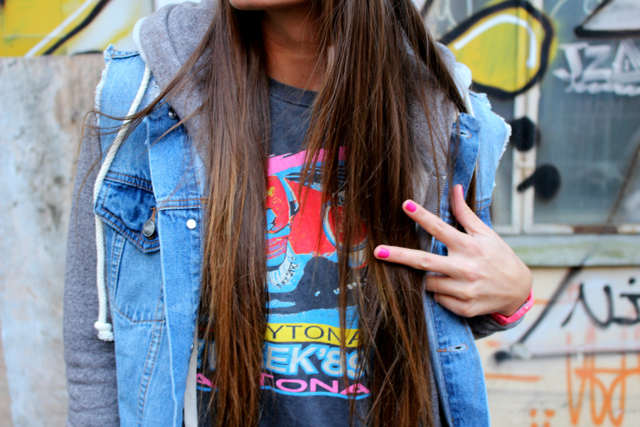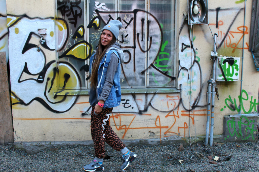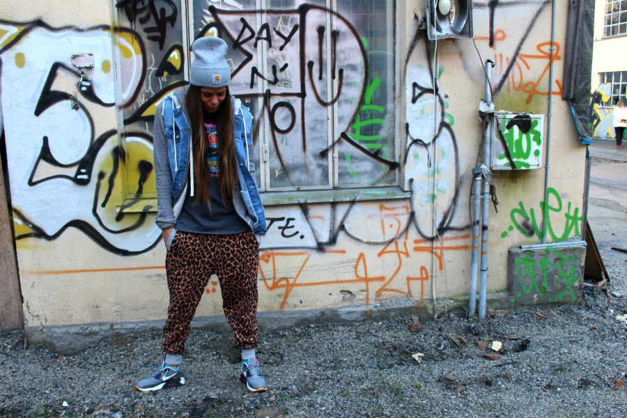 Sweat pants fra Eivy // t-shirt fra Bik Bok // hoodie fra Roxy // denimvest fra Urban // klokke kjøpt i Spania // Nike Air Max på beina // lue fra Carhartt (her) // neglelakk fra OPI i fargen «Don’t Know Beats Me»